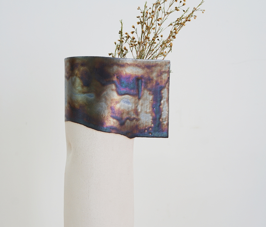 Jeune céramiste, designer textile de formation, Pauline Bonnet explore la relation corrélative qui existe entre intérieur et intériorité, et invente un dialogue en miroir entre le chez soi et le en soi. S’attachant à renouveler les formes et les savoir-faire propres aux arts du feu, elle fabrique des pièces évocatrices, à la fois objets et sujets, qui habitent autant qu’elles abritent ; ses objets domestiques figurent un ailleurs, performent un intérieur fictif, dont le regardeur est invité à s’emparer en y projetant ses propres fantasmes.